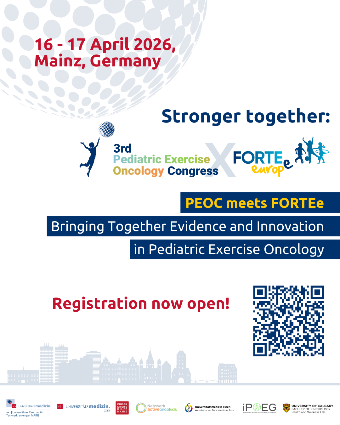 We invite researchers, clinicians, and professionals in pediatric exercise oncology to submit abstracts for the 3rd PEOC meets FORTEe Congress.